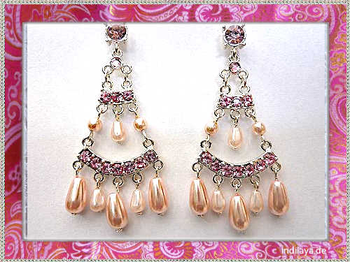 Bollywood Ohrstecker rosa mit Strass und Steinchen