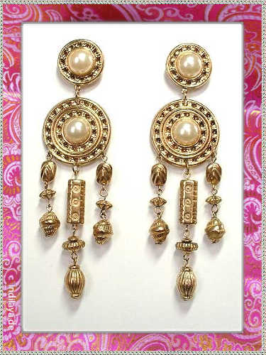 Bollywood Ohrstecker mit cremefarbenen Perlchen goldfarben