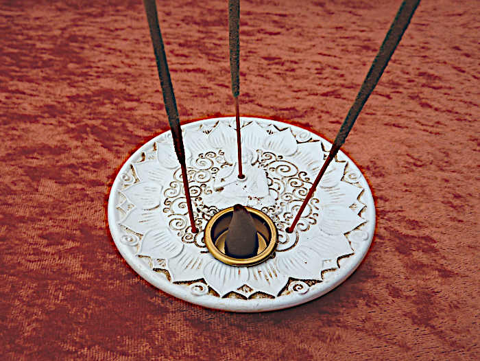 Buddha Lotus Räucherhalter für Stäbchen und Kegel weiss