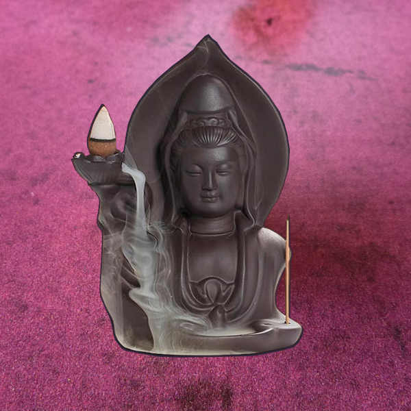 Buddha - Rückfluss-Räucherkegel-Halter mit Wasserfalleffekt