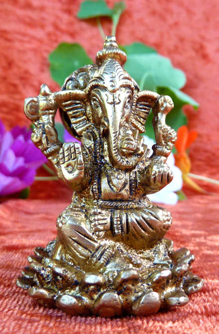 Messingstatue Hindugott Ganesha auf Lotus, sehr detailreich