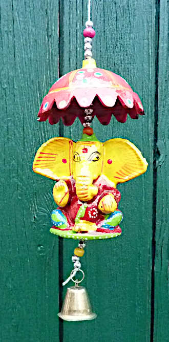 Ganesha rot mit Glocke und Schirm Lack-Mobile