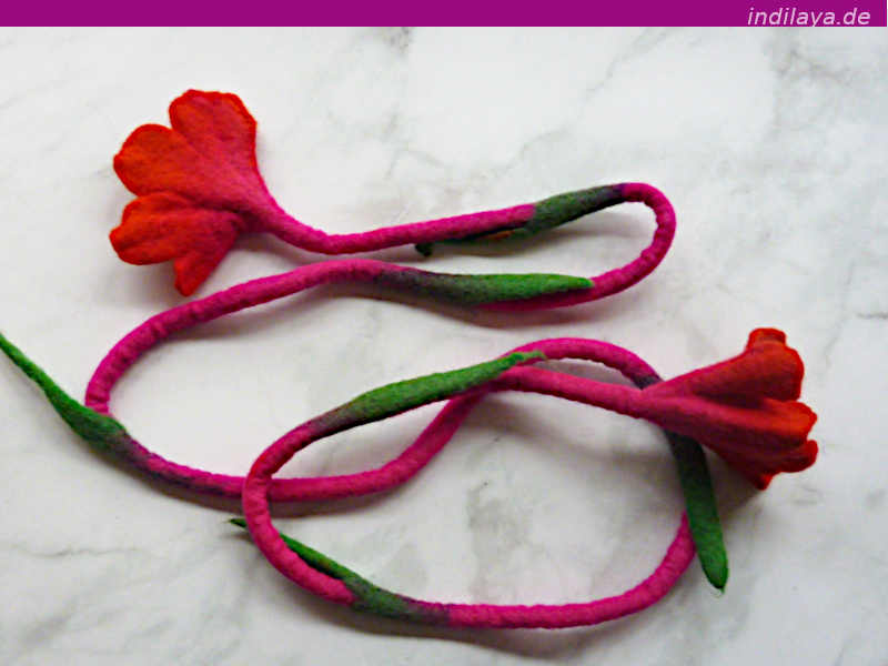 Filz-Girlande Pink mit grünen Blättern und 2 Blüten orange