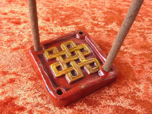Halter für tibetische Stäbchen - Endloser Knoten rot