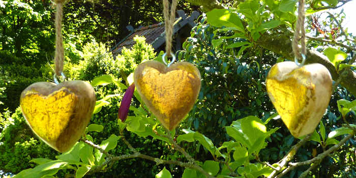 Goldfarbenes Herz zum Hängen, Mangoholz