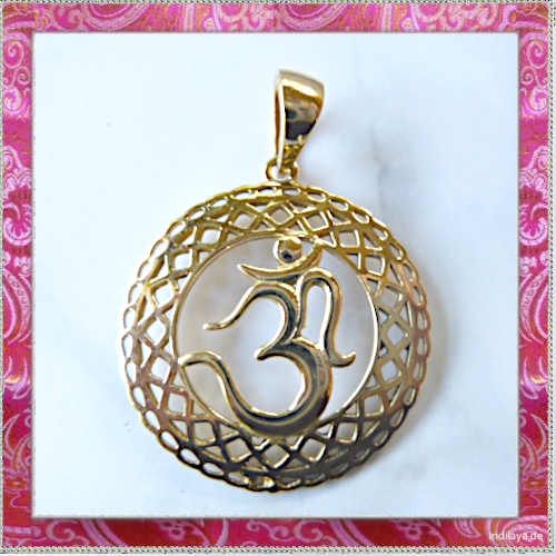 OM-Anhänger symbolisiert die heilige Silbe Om (oder Aum>), die im Hinduismus, Buddhismus und Jainismus als Urklang des Universums gilt.