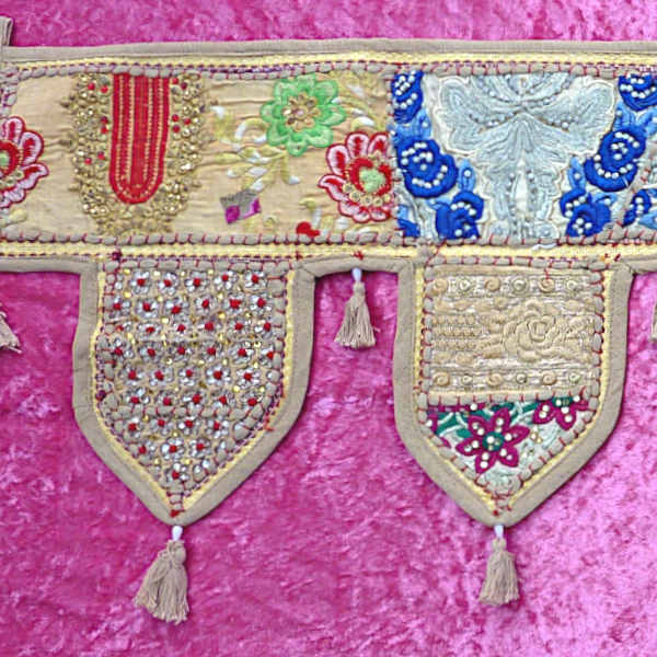 Mobile Preview: Thoran Türbehang sandfarben mit Pailetten und bunten Stickereien