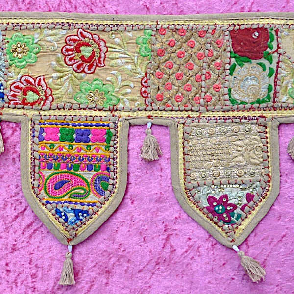 Thoran Türbehang sandfarben mit Pailetten und bunten Stickereien 5 Lamellen /1