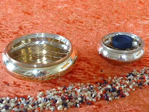 Indisches Räuchergefäß mit Gravur und Gitter flach, groß