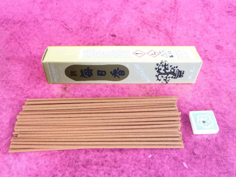 Typisch japanische Räucherstäbchen, raucharm, mit mild-süßem und weich-holzigem Palo-Santo-Duft.