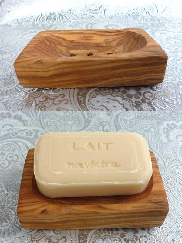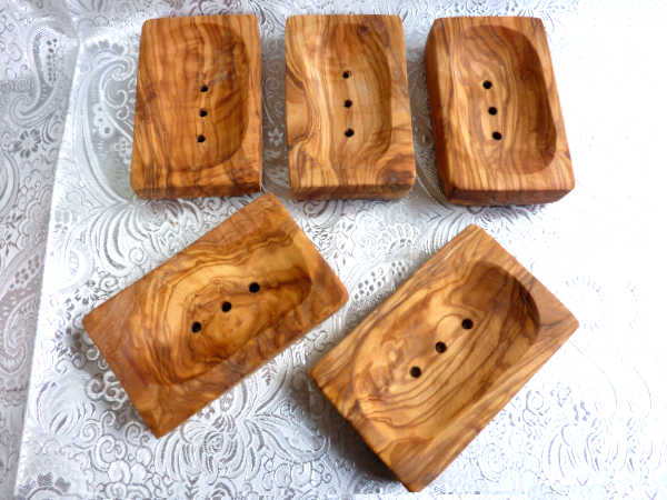 Seifenablage aus interessant gemasertem Olivenholz, rechteckig