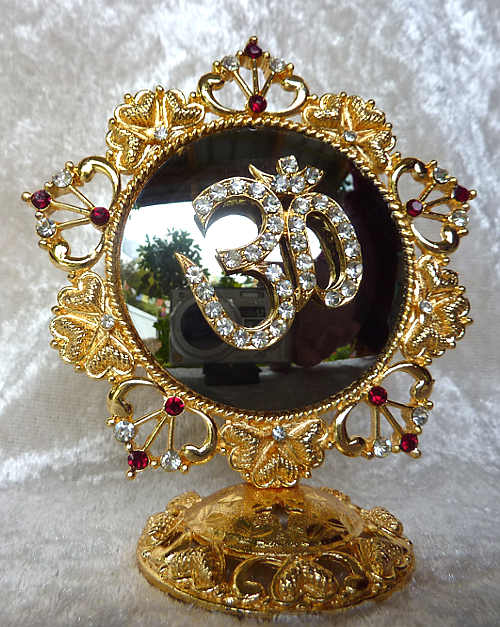 Glitzernde OM-Statue, glodfarben mit Glassteinchen verziert