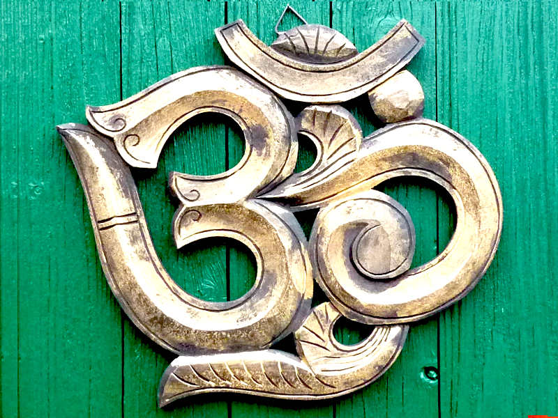 Großes Holz OM antikgold 39x32 Wandschmuck zum Hängen