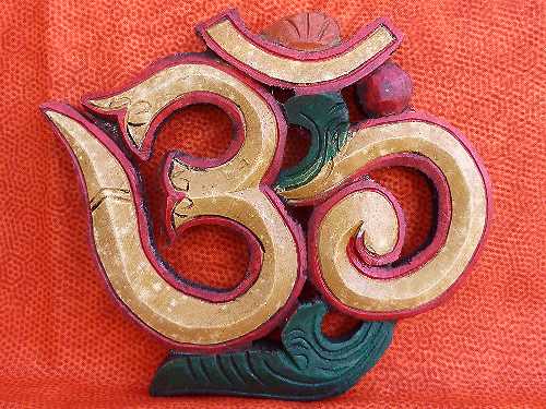 OM zum Aufhängen Hell-Gelb, Holz, aus Nepal