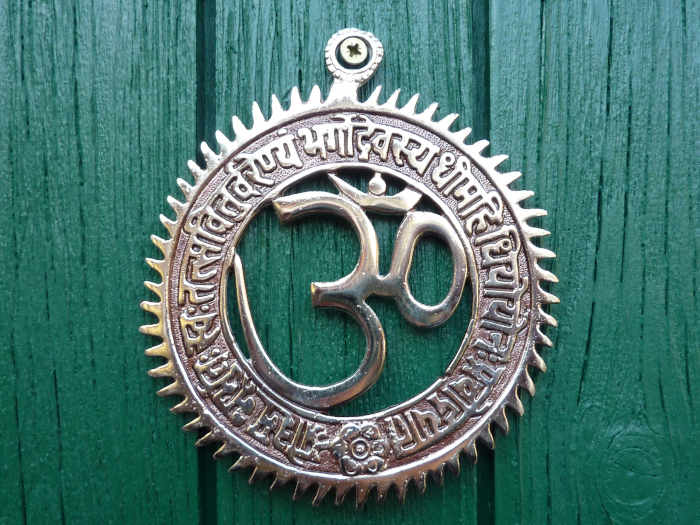 OM im Sonnenrad Wandschmuck mit Gayatri Mantra