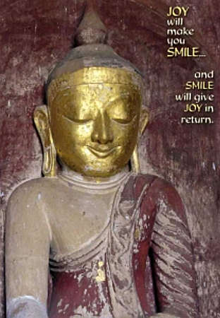 Postkarte Buddha mit Zitat "JOY will make you SMILE"