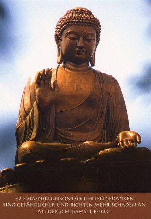Postkarte "Die eigenen unkontrollierten Gedanken " Buddha-Statue mit Zitat