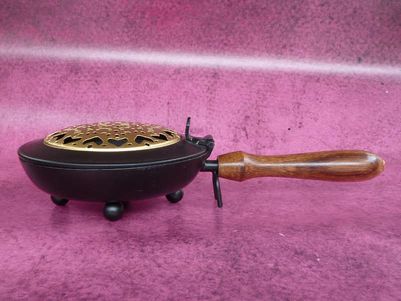 Räucherpfanne goldenes Herz-Mandala mit Deckel und Holzgriff