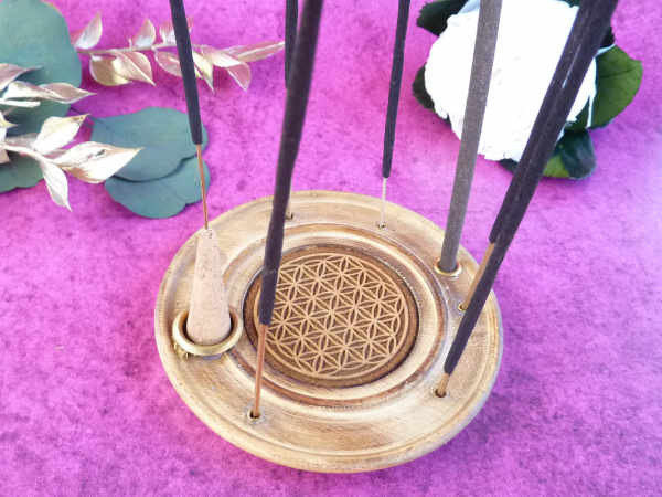 Blume des Lebens Halter für dicke & dünne Räucherstäbchen & Kegel Holz