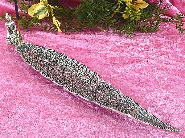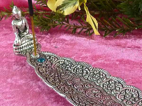 Räucherstäbchenhalter Buddha auf Blatt 32cm