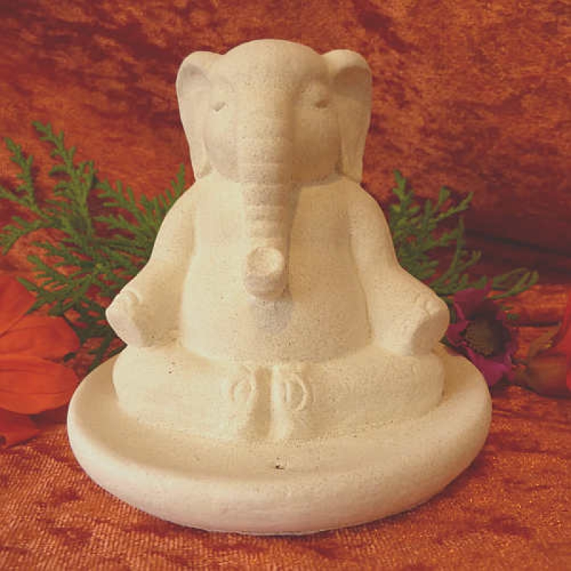 Räucherstäbchenhalter aus schwerem Resin - meditierender Elefant für 1 Räucherstäbchen mit dünnem Holzkern.