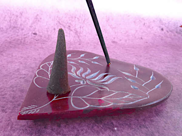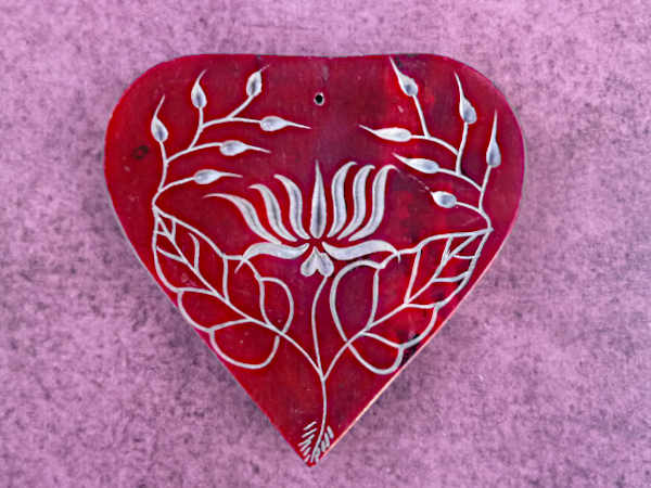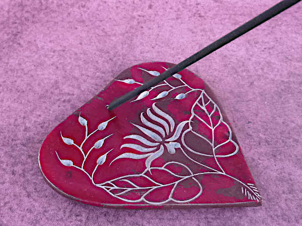Räucherstäbchenhalter Herz mit Lotus, Speckstein rot