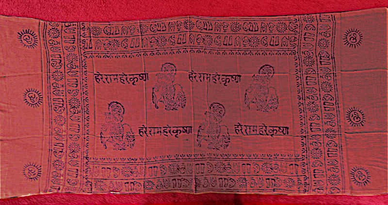 Ram Nami Schals sind ein Massenprodukt und werden in Indien, Tibet und Nepal in unzähliger Menge hergestellt und verbraucht. Sie sind, wie die Gebetsfahnen auch, nur grob von der Stoffbahn geschnitten und die Schnittkanten werden nicht umsäumt. Das ist kein Mangel.