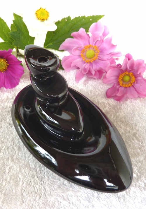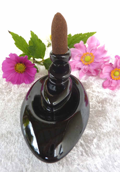 Ein Sandelholz-Rückflusskegelchen zum Üben und eine von mir verfasste Anleitung/Erklärung zu Funktion bzw. Handhabung der Rückfluss/Wasserfall Räucherhalter und Kegel liegen jedem Rückfluss Weihrauchbrenner bei.