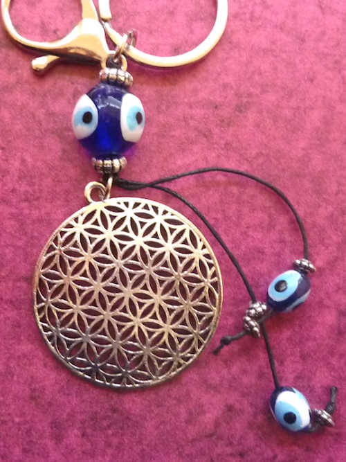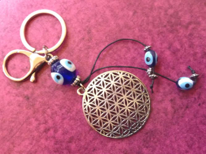 Blume des Lebens & Nazar-Perlen Schlüsselanhänger