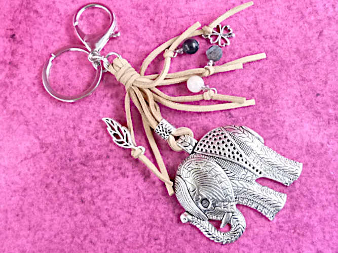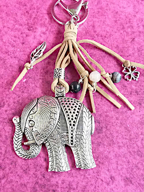 Schlüsselanhänger Elefant mit Glücksklee-Anhänger und Leder