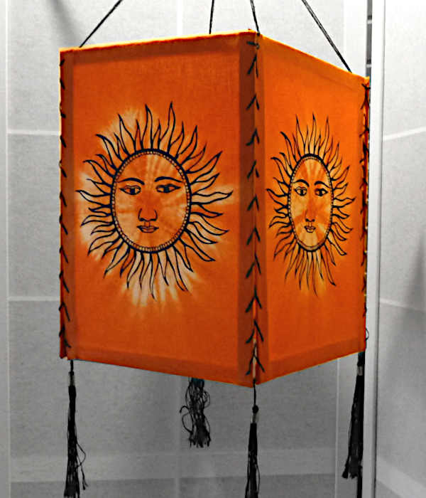 Nepal Lampenschirm Sonne, Baumwolle Batik orange