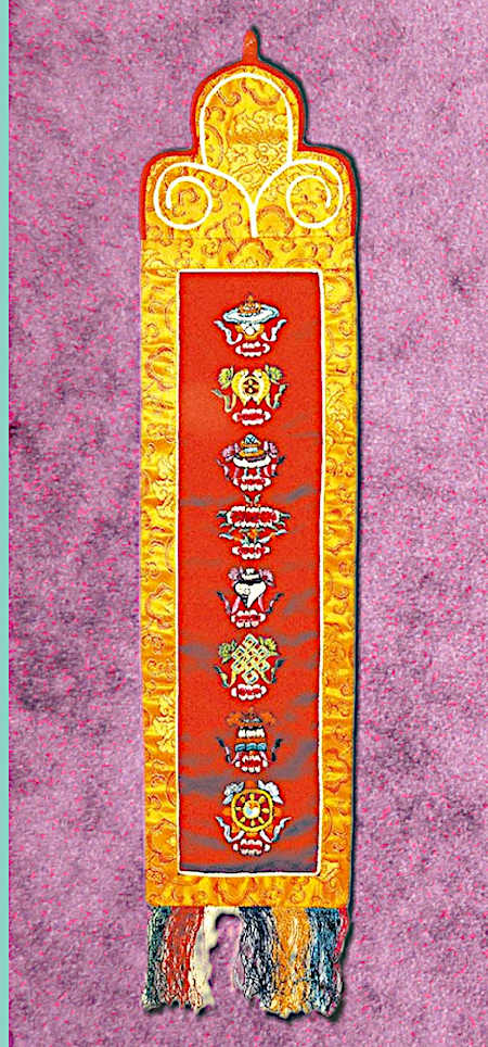 Buddhistischer Wandbehang 8 Glückssymbole, Ashtamangala, Brokat