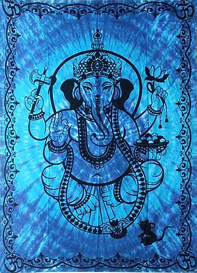 Wandtuch Wandbehang Batik Ganesha blau