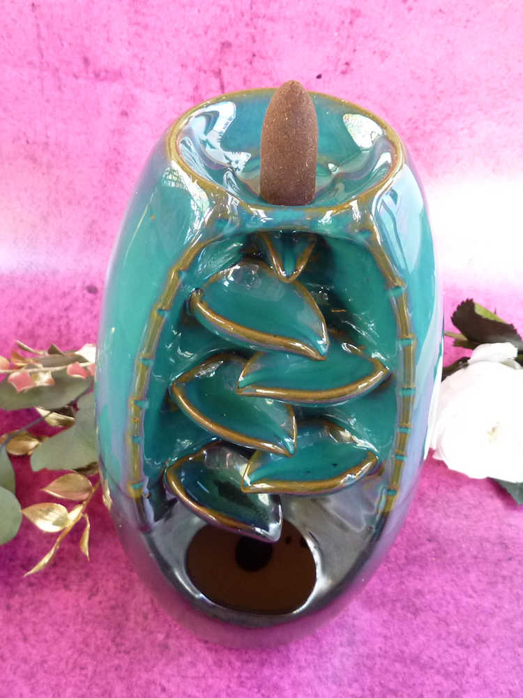 Räucherwasserfall Rückfluss- Kegelhalter Kaskaden türkis, Keramik