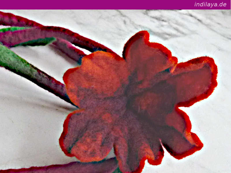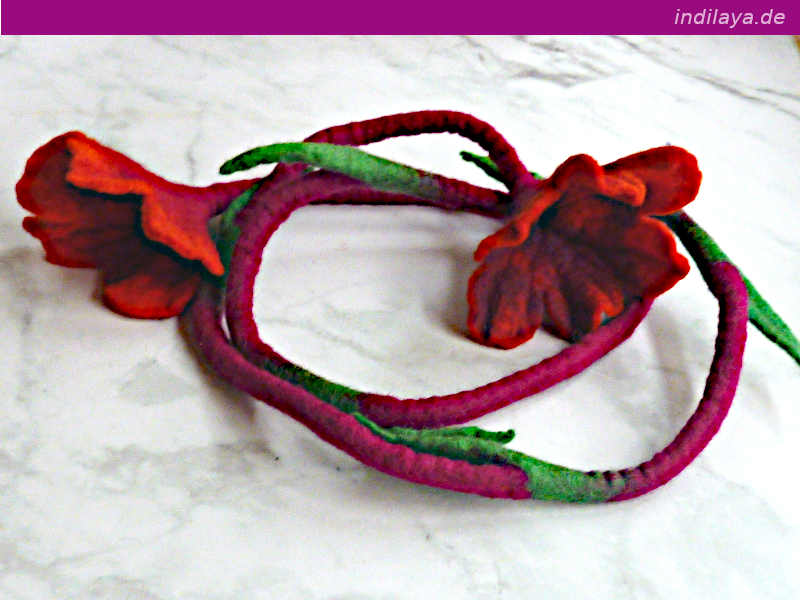 Filz-Girlande violettmit grünen Blättern und 2 Blüten orange