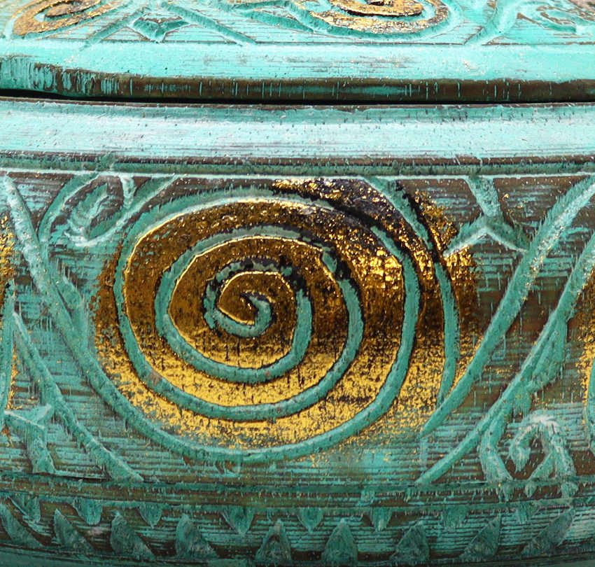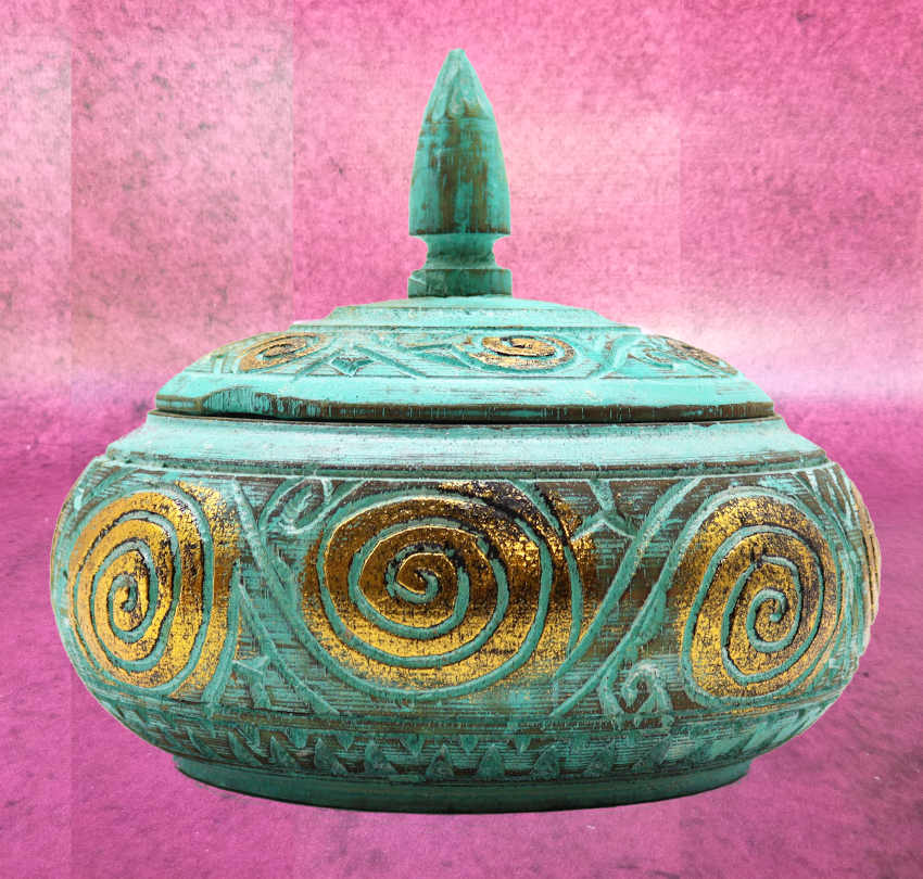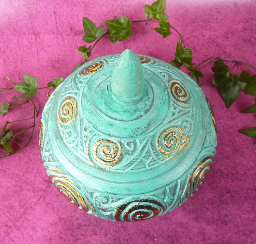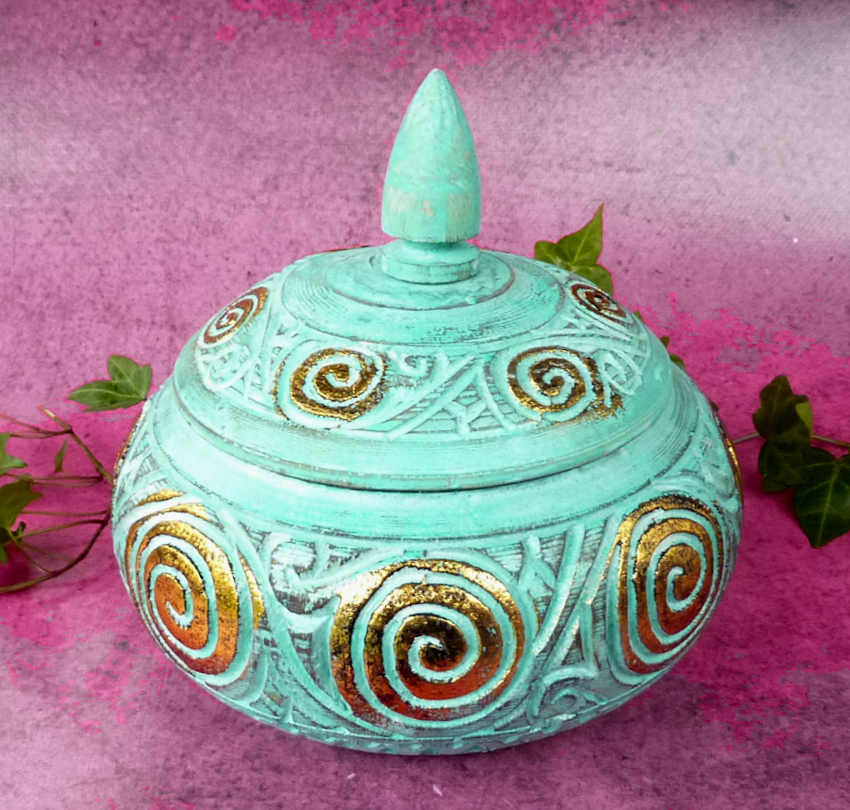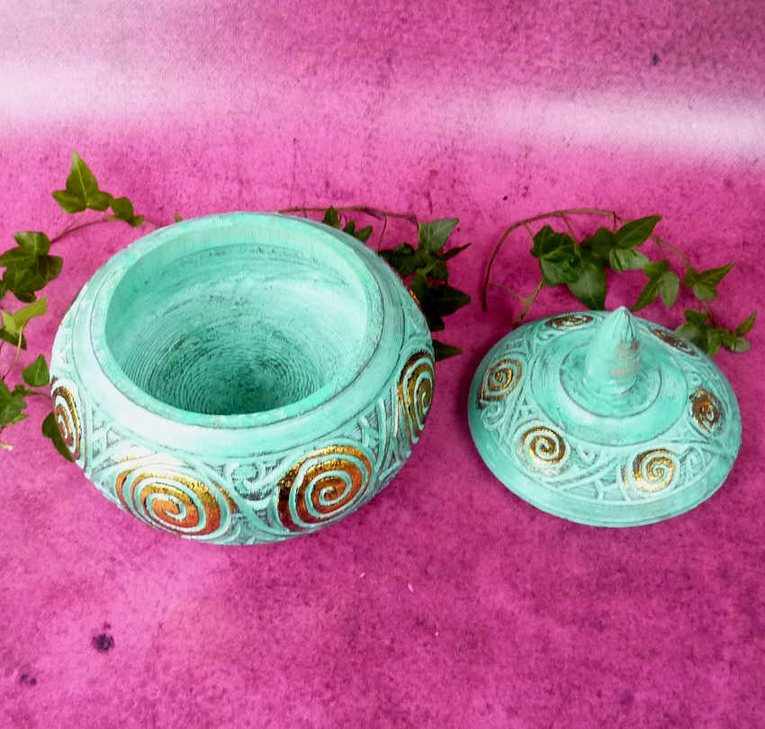 Charmante Holzdose Türkis/Gold handgefertigt in Indonesien